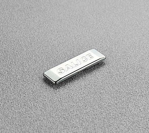 Placa metálica cubretornillos Salice diseñada para cubrir los tornillos de fijación en sistemas de bisagras, permitiendo una terminación limpia, uniforme y profesional en el interior del mueble.